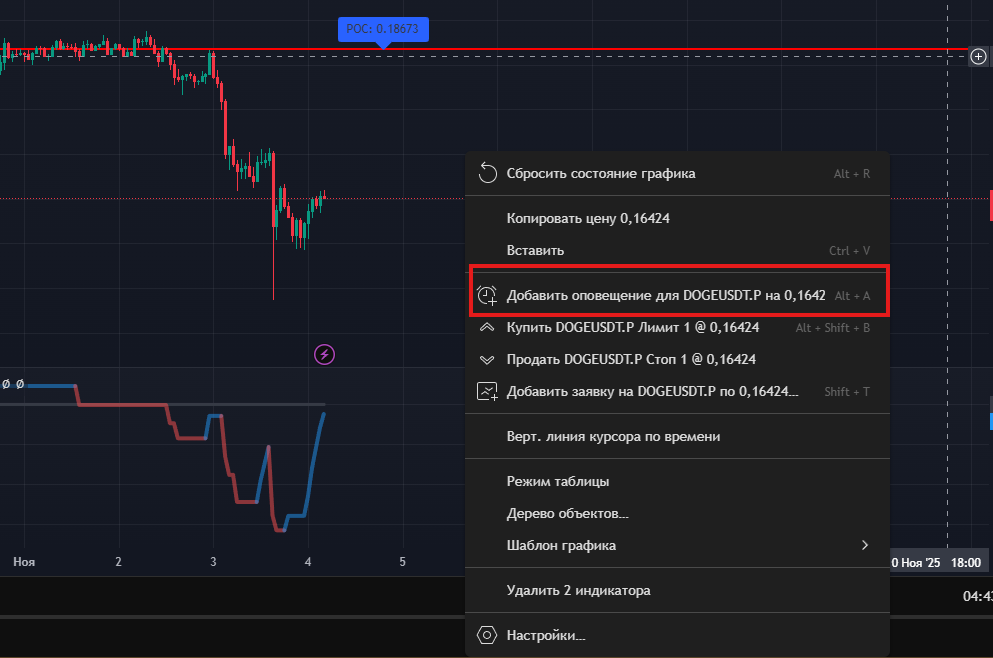 Используйте алерты в TradingView, чтобы получать уведомления при достижении ключевых уровней