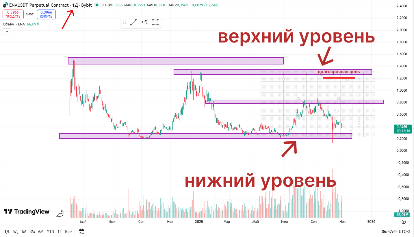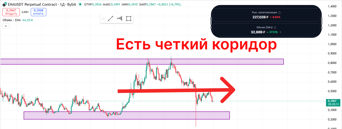 🔷 ENА — ходит по чёткой структуре, зона поддержки и сопротивления легко прослеживаются